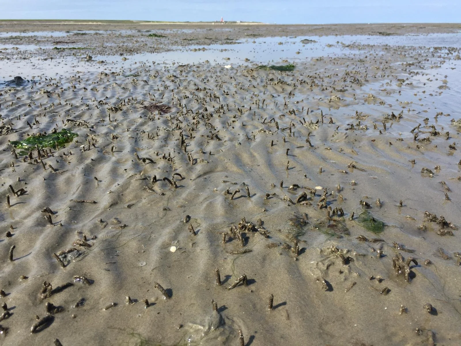 Een tip voor wie de kans heeft het wad te voet te betreden: geniet van de weidsheid van het landschap, maar kijk de bodem ook van dichtbij. Misschien zie je de sifonen van nonnetjes als kleine doorzichtige slurfjes die rondzoeken naar voedsel, een slijkgarnaal die met lange voorpoten kruipt, een minuscuul wadslakje, of een gestippelde dieseltreinworm – één van de mooiste wormen op het wad. Zo onthult zich de diversiteit achter de schijnbaar monotone moddervlakte.